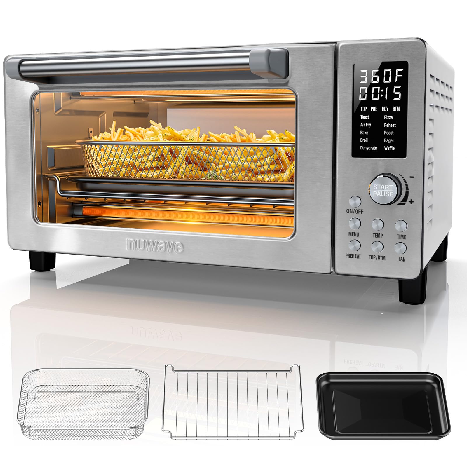 - 2X MORE EVEN: This Air Fryer Toaster Oven utilizes the latest 2025 upgraded Ultra-Fast Convection System, combined with top and bottom heating elements, virtually eliminating temperature variations even when cooking on multiple racks. Compared to other brands, Nuwave offers twice the uniformity and efficiency. Save you both time and energy.