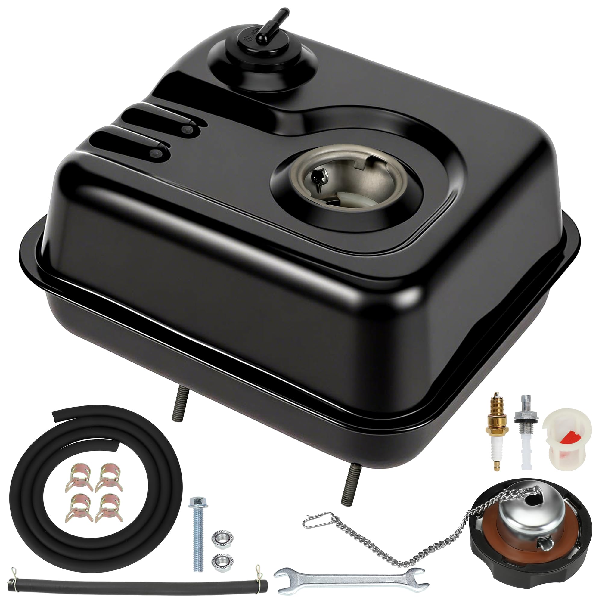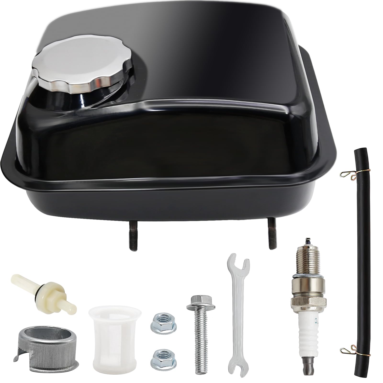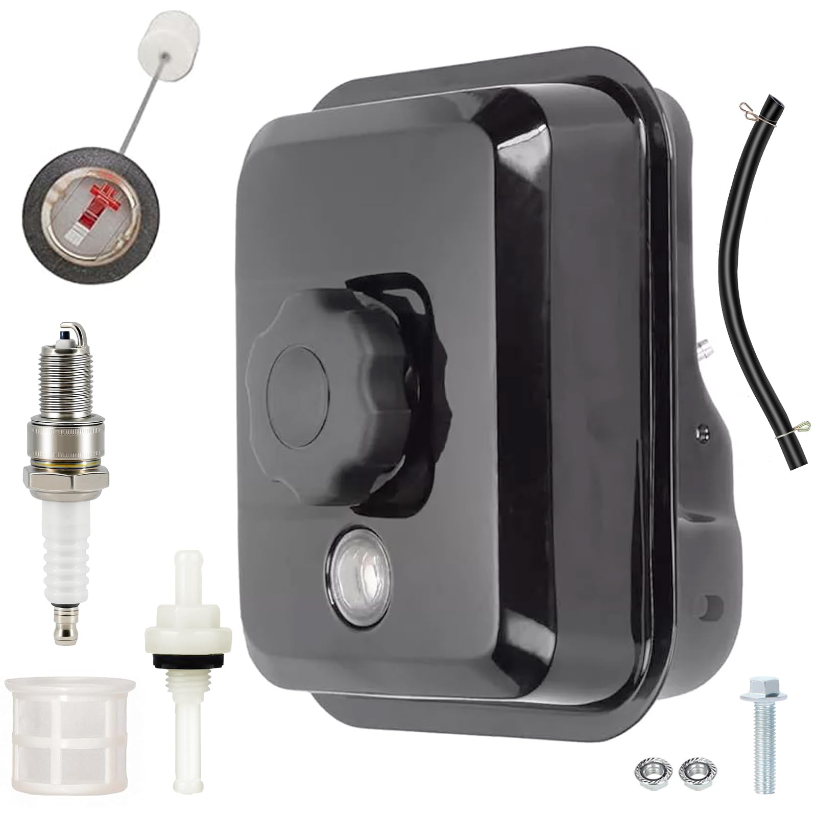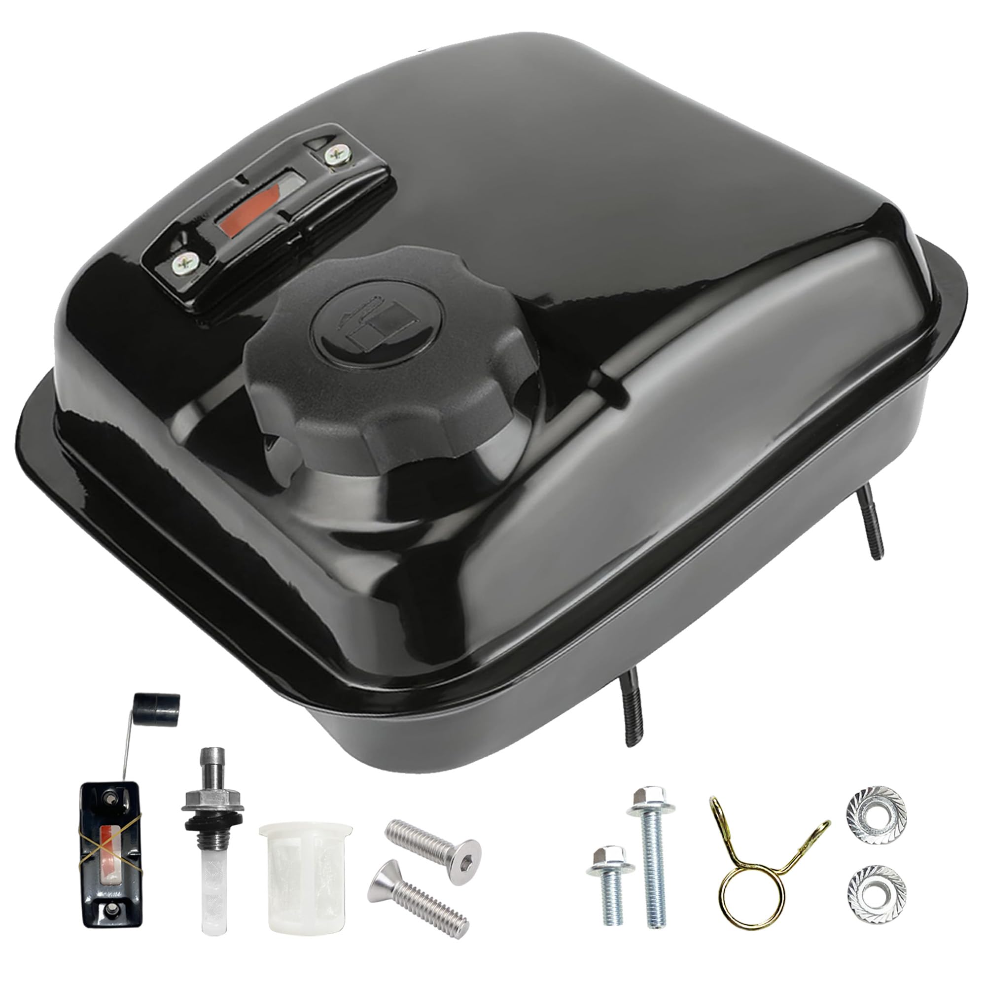 - Package List: 1x Gas Fuel Tank, 1x Gas Fuel Tank Cap, 2x Nuts, 2x Screws, 1x Clamp,1x In-Tank Filter