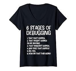 Womens 6 Stages of Debugging Full Stack Coder Software Developer V-Neck T-Shirt