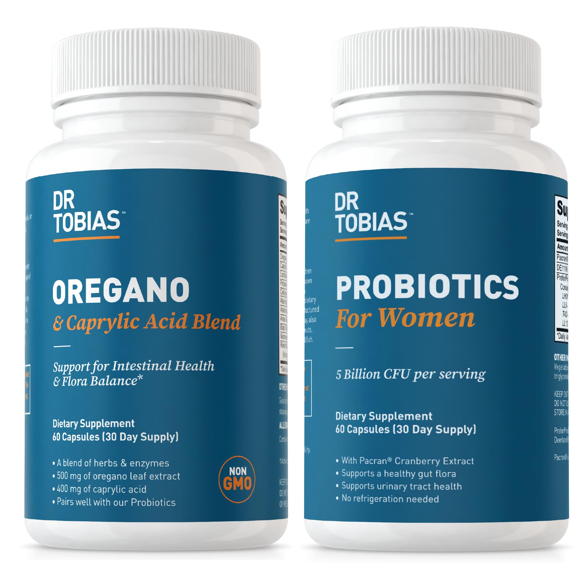 Dr. Tobias Candida Support, Gut Flora Balance Complex with Oregano, Caprylic Acid, Enzymes & Probiotics, Support Intestinal Detox Cleanse & Gut Health for Women & Men, 60 Capsules, 30 Servings