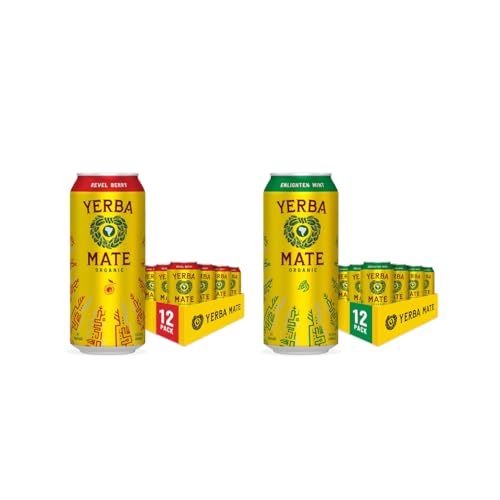 Yerba Madre Organic Yerba Mate Clean Energy Drink Alternative Bundle, Enlighten Mint & Revel Berry Flavors, 15.5 Oz (Pack of 24), 150mg Natural Caffeine, Smooth Energy & Focus