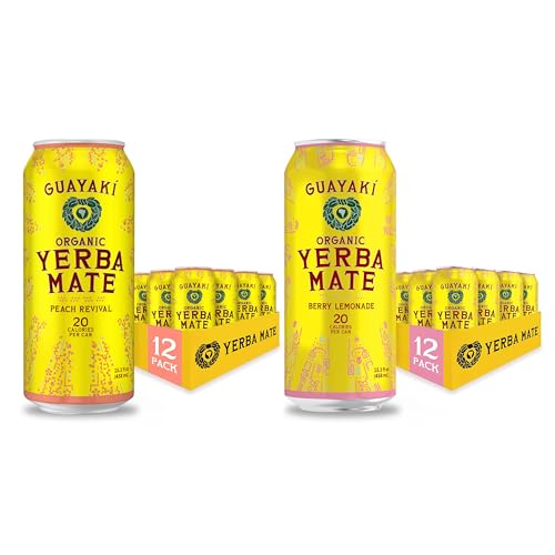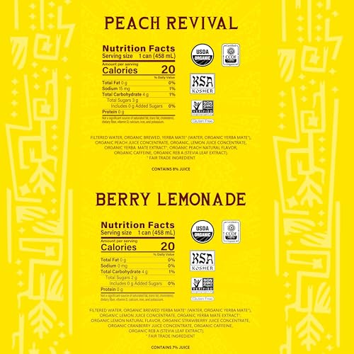 Yerba Madre Organic Yerba Mate Clean Energy Drink Alternative Bundle, Peach Revival & Berry Lemonade Flavors, 15.5 Oz (Pack of 24), 150mg Natural Caffeine, Smooth Energy & Focus