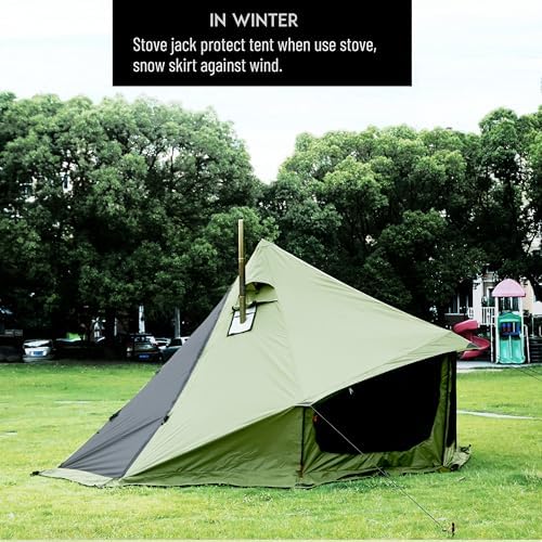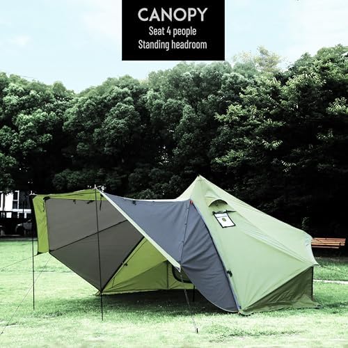 Preself 4 Season Tipi Tent, Hot Tent with Canopy, Standing Room, Teepee Tent for Hunting Family Team Camping Hiking