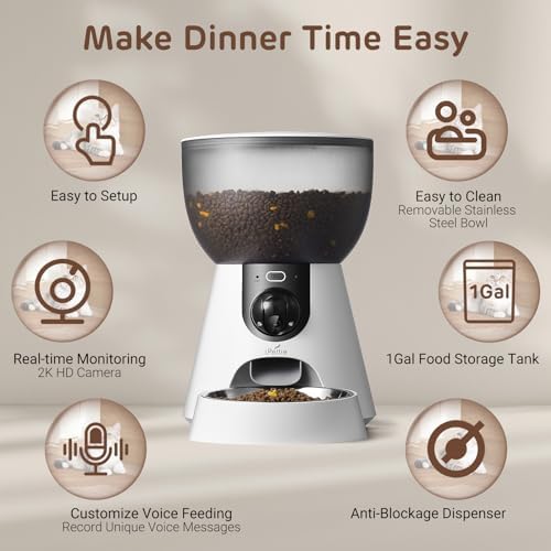 - Large Capacity and Smart Features: The iPettie F4-C has a large 4L/1Gal food container, reducing refill frequency. It also includes a camera cover for privacy protection, ensuring peace of mind while using the feeder.