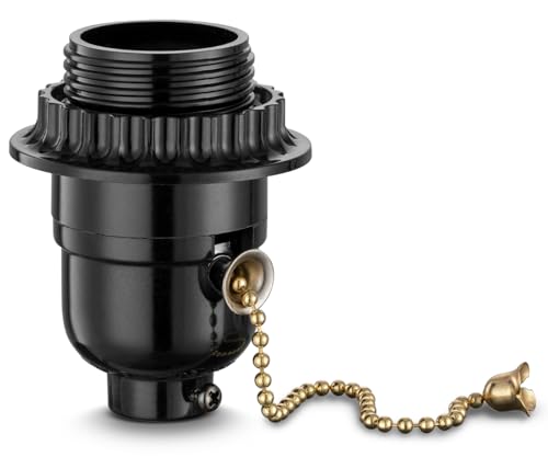 Pull Chain Light Bulb Socket With Shade Ring, E26 Replacement With ON/Off Switch, Holder for Table and Floor Lamp, Parts, Black, UL Listed, 1-Pack
