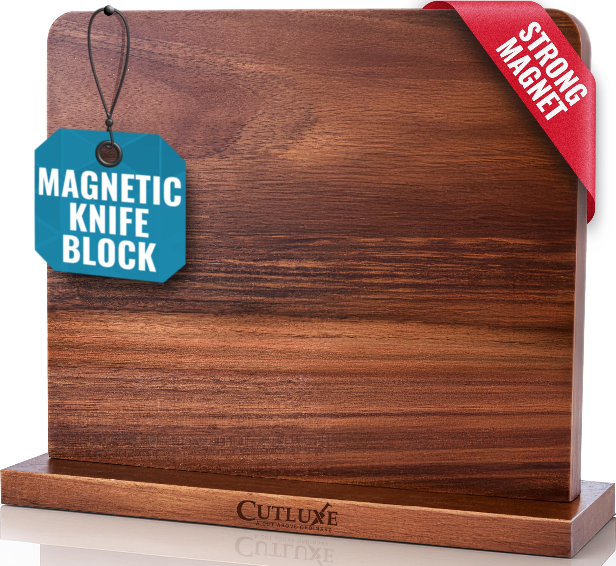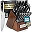 - STYLISH DESIGN: Transform your kitchen with this knife block set, boasting full-tang construction for superior balance and durability. The natural walnut wood block adds a touch of modern elegance.