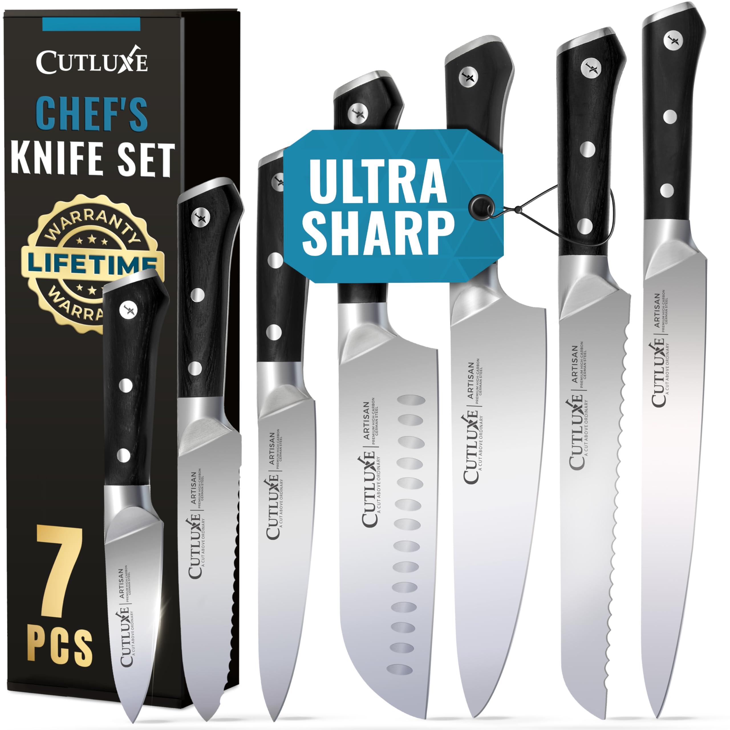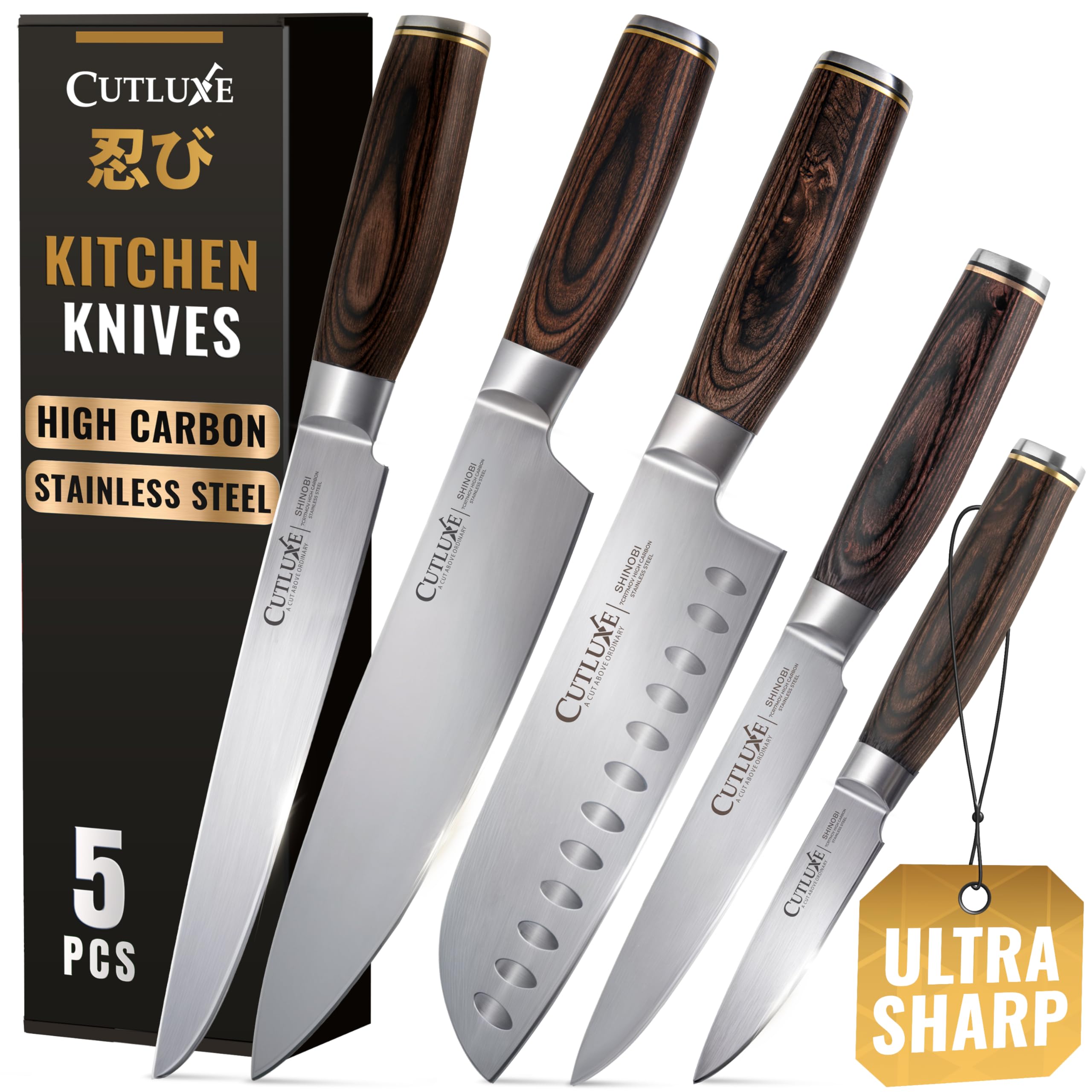 - EVERYDAY KNIFE SET: Upgrade your daily culinary skills with the Cutluxe professional knife set featuring ultra-sharp high-carbon German stainless steel blades and ergonomic pakkawood handles for precision cutting.