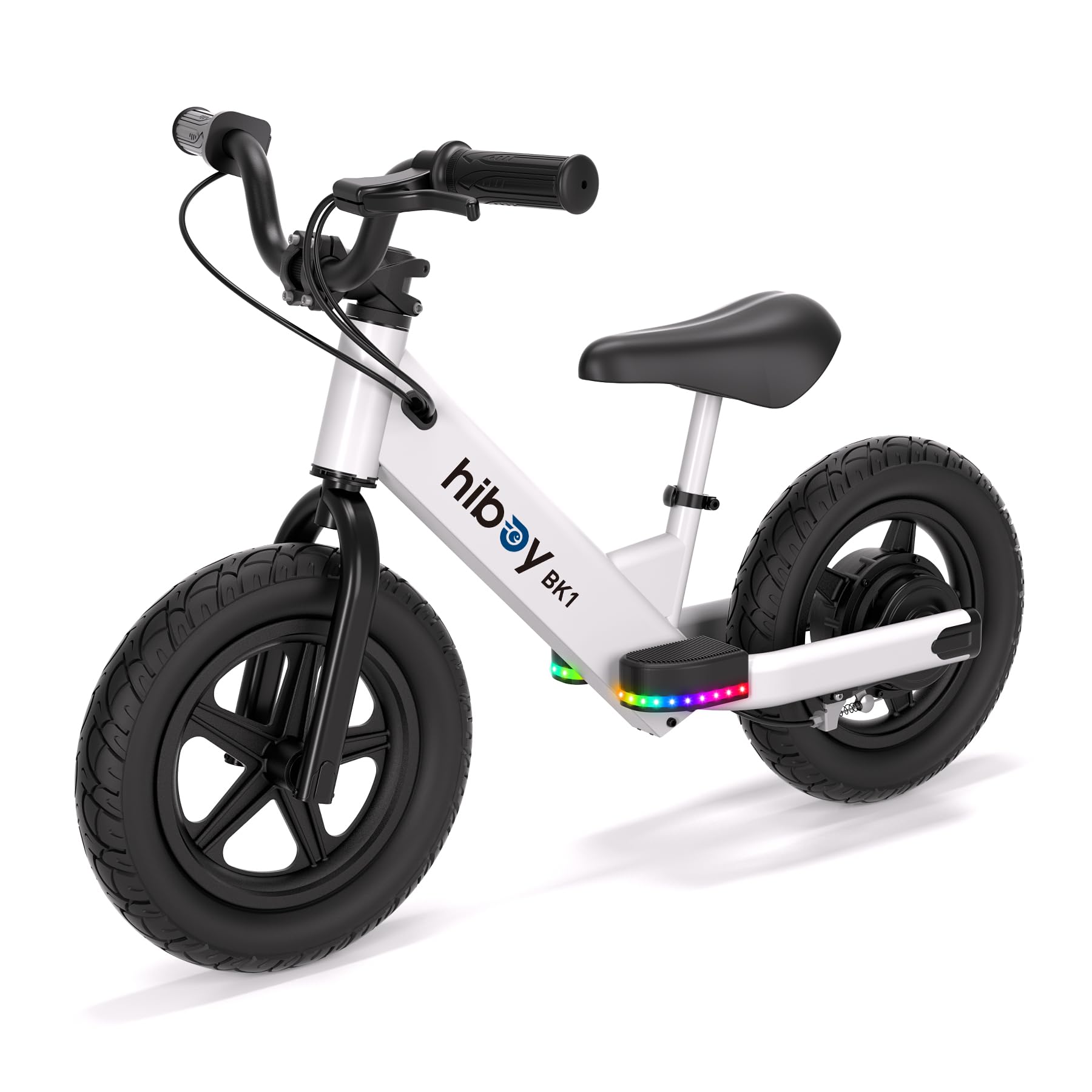 Ride, Learn, and Grow with Confidence — The Hiboy BK1 Electric Balance Bike Give your little one the joy of their first ride with the Hiboy BK1 — a fun, safe, and confidence-building electric balance bike made just for kids ages 3–5. Whether it’s a relaxed ride in the park, a short trip down the driveway, or playful practice in the backyard, the BK1 helps children learn balance and control while enjoying every moment on two wheels. Lightweight and Easy to Handle At only 20.06 lbs, the BK1’s compact 35.9" × 20.2" × 24.4" frame is perfectly sized for small riders. The adjustable seat (17.2–19.1 in) ensures a comfortable fit as your child grows, providing lasting fun through early riding years. Safe Power, Just the Right Speed Powered by a 150 W peak motor and a 21.6 V / 2.6 Ah battery, this electric balance bike for kids offers smooth acceleration up to 9 MPH and a range of 4.9 miles per charge. Two speed modes let parents choose a comfortable pace that matches their child’s learning stage. Kick, Glide, and Go With an intuitive kick-start design, kids simply push off the ground, then press the accelerator to ride forward. This helps them naturally develop balance, coordination, and confidence before moving on to bigger bikes. Quick Charging & Weather-Ready Charging takes only 3–4 hours, so the fun continues without long waits. The IPX4 water-resistant rating ensures the bike stays ready for use on light-damp paths or grassy lawns. Reliable Braking, Smooth Control A responsive front V-brake and sturdy 12-inch tires deliver steady grip and quick stops, giving parents peace of mind while kids enjoy safe and stable rides. The Hiboy BK1 turns everyday moments into simple, joyful rides — helping kids build confidence, independence, and a love for cycling from the very beginning.
