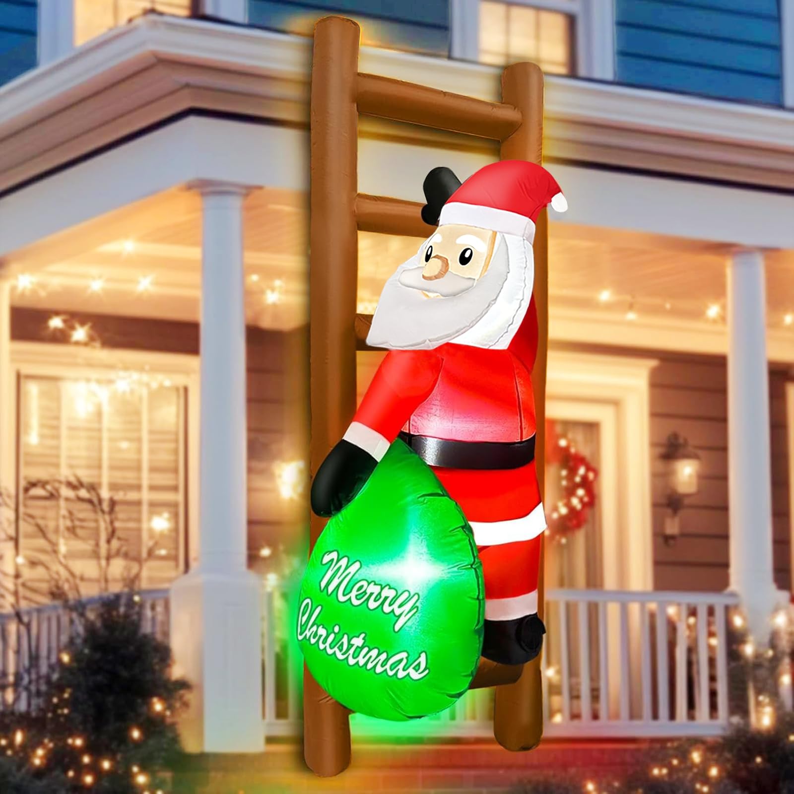 - Luminous Santa Claus Inflatable Decoration: Built-in 3 LEDs white lights, the Santa Claus inflatables decorations maintain eye-catching even at night, ensuring your yard remains dazzling in the dark and gain praise from neighbors and visitors