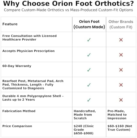 - 1. Custome Made: Each pair of orthotics is uniquely shaped based on a precise foot impression that you provide. We send a free foam box to your home, ensuring a perfect mold of your feet for the most accurate fit possible.Durable Construction: Made from high-quality semi-rigid 4 mm polypropylene, these orthotics offer exceptional durability and support.