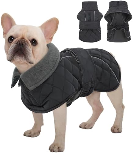 Kuoser Extra Warm Dog Jacket, Windproof Cold Weather Coats for Small Dogs, Fleece Lined Turtleneck Dog Snowsuit, Reflective Adjustable Pet Winter Coat, Dark Grey S