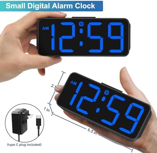 - 𝐒mall 𝐃igital 𝐀larm 𝐂lock with 𝐂ompact & 𝐕ersatile 𝐃esign - Considering about practicality, durability and aesthetics, Peakeep as a leading brand of alarm clocks, designed this LED clock with a compact and petite size of 5 (L) * 1 (W) * 2 (H). This little digital clock for bedroom takes up minimal space and easy to carry, making it a great choice for bedroom, dorm room, desk, shelf or travel.