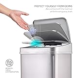 - This touchless automatic trash can is a convenient way to keep your kitchen clean. at 13 gallons, it has plenty of capacity to hold trash from meal prep and clean up without needing frequent emptying. Made of fingerprint-resistant 430-grade stainless steel, it has a durable construction that stands up to daily use. Open the lid by simply waving your hand in front of the motion sensor, so you can throw things away with no contact. The sensor closes the lid automatically. A ring liner is included to make emptying a breeze. With its stylish brushed steel exterior, this trash can will look great in your kitchen while saving you the hassle of manually opening and closing the lid.