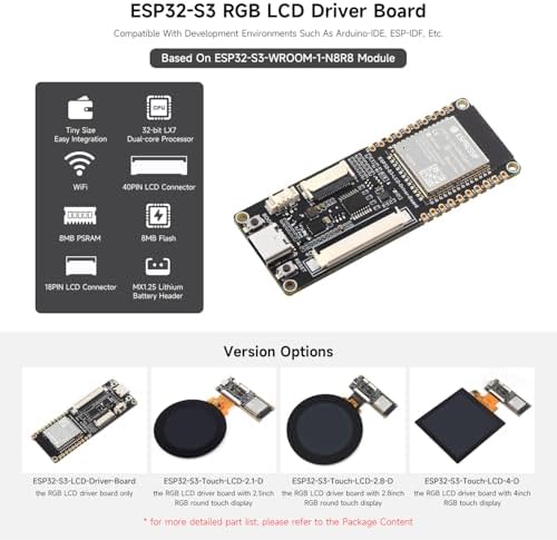 Waveshare ESP32-S3 RGB LCD Driver Board, Equipped with 32-Bit 240MHz LX7 Dual-Core Processor, 8MB PSRAM and Flash, WiFi & Bluetooth Support, Driver Board Only