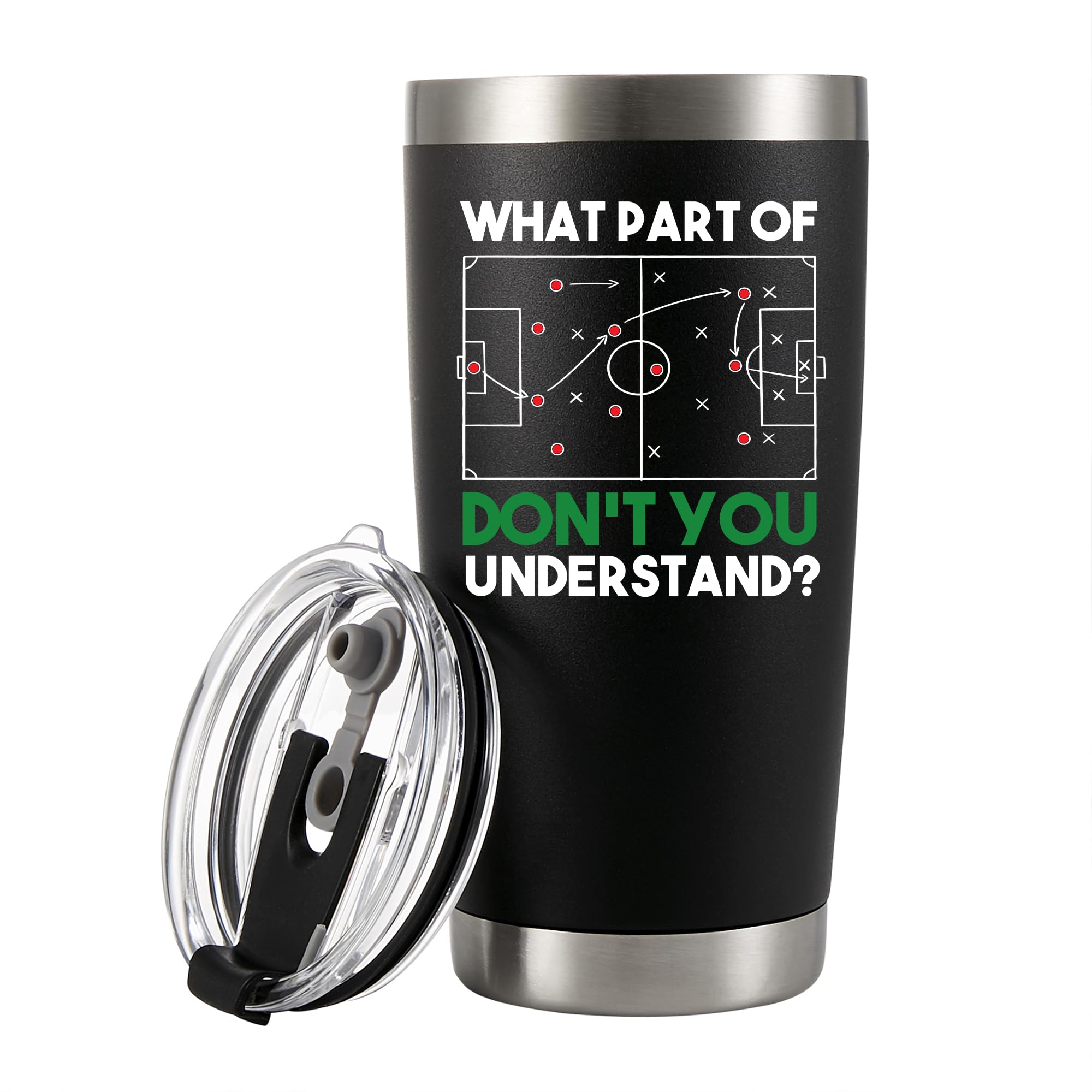 - Ultimate Gift That Stands Out From the Rest: Our 'What Part Don’t You Understand Soccer' tumbler is a winning choice for a soccer player or coach. Your loved ones and family can now enjoy their favorite beverages with this funny travel mug designed to send smiles and love. Trust us, you'll not only want to get this for your family or friends but also for yourself if you are a sports soccer lover.