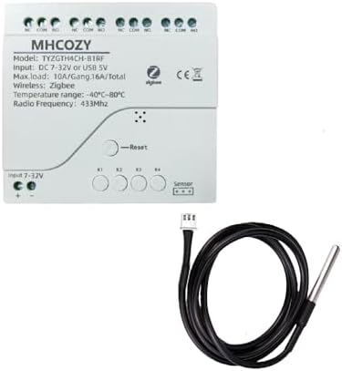 Zigbee Temperature Monitor Controller,4 Channel 12V Tuya app Remote Dry Contact Smart Relay Switch with Waterproof Temperature Sensor Probe(Tuya Zigbee hub needed)