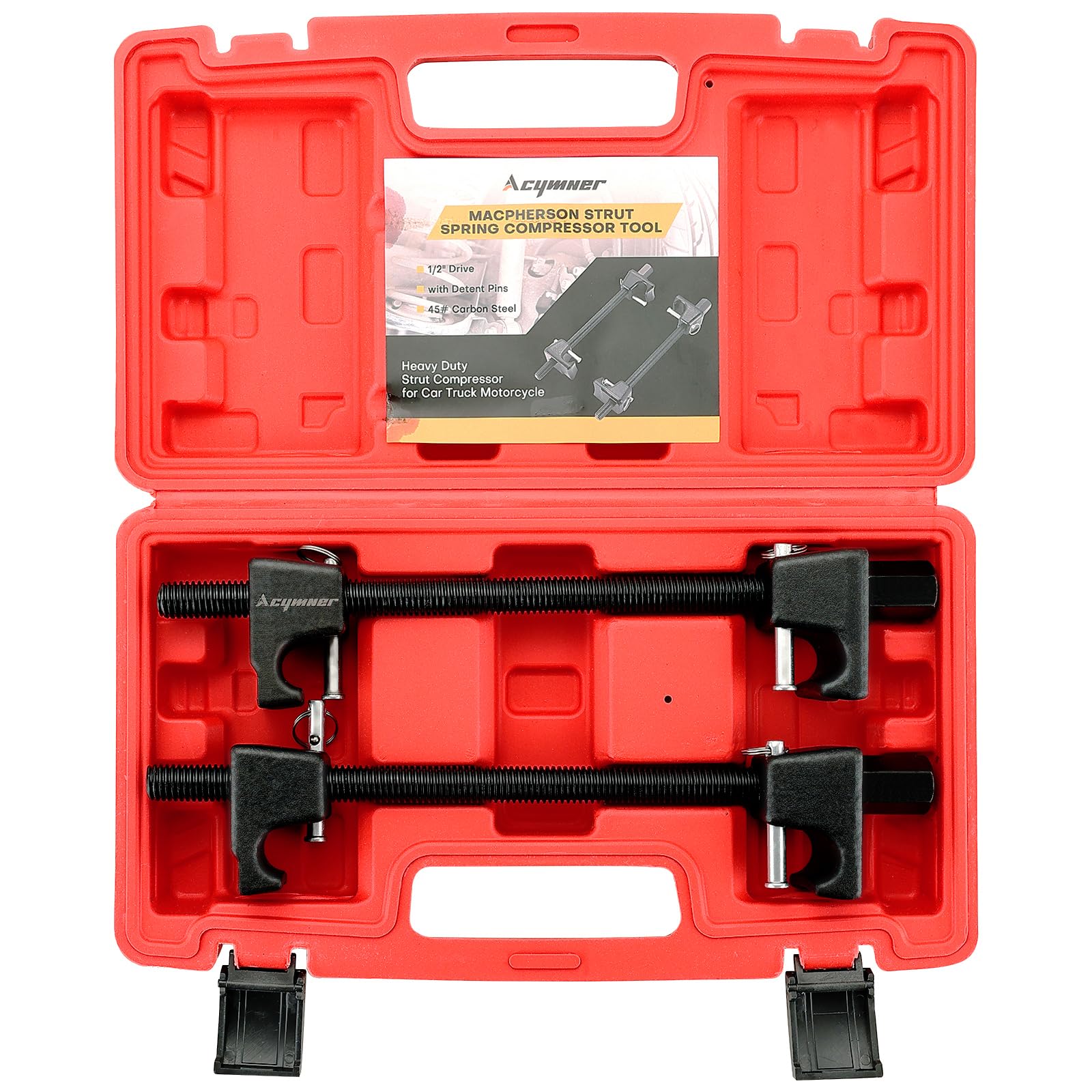 - Convenient Storage: The spring compressor tool, housed in a sturdy plastic case, offers easy transport, safe storage, and quick access, ideal for both professionals and DIY enthusiasts