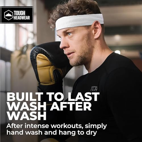 Tough Headwear Terry Cloth Running Headband - Sweat-Wicking Athletic Sweat Band - Court-Ready Basketball Accessories - Headbands - White 2pack