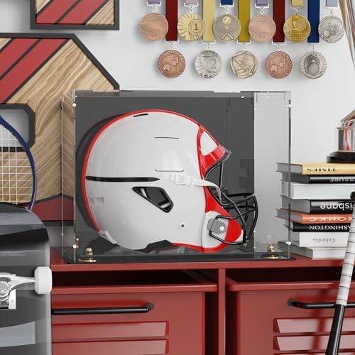 Football Helmet Display Case Full Size with Mirror Back and Black Base Dustproof Clear Acrylic Display Case for Basketball Sports Memorabilia