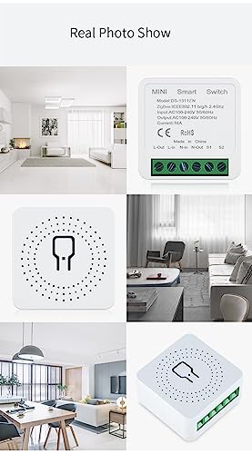Zigbee Mini Smart DIY Relay Switch Material: ABS Voltage: 100-240VAC 50/60Hz Max. Current: 16ASize:41mm*41mm*20mm Color:White Button life:100000 times Fire Rating:94-V0 Wifi: Wifi: 2.4GHz 802.11b/g/n compatible: amazon alexa,Google Certification: CE, FCC,RoHS