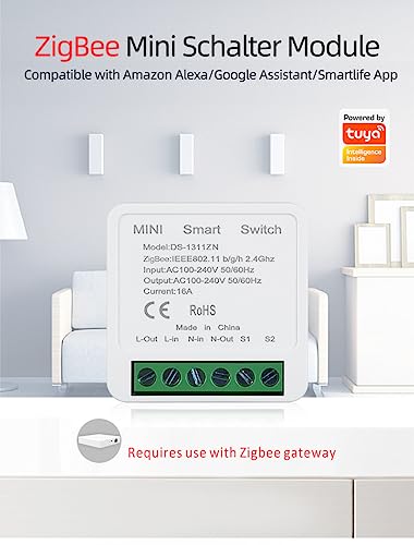 Zigbee Mini Smart DIY Relay Module Switch Compatible with Alexa Google Home App and Voice Control,ZigBee Hub Required.16A (2Pack)