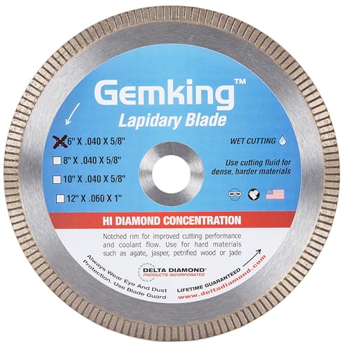 Delta Diamond Gemking Lapidary Saw Blade, 6-inch, Ultra-Thin Notched Rim for Gemstones, Agate, Geodes (6" X .040 X 5/8" Arbor)