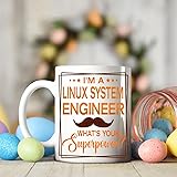 - Linux System Engineer 11oz White Ceramic Mug: Monizilucky creates unique funny coffee mugs which make great Birthday gift ideas for men, Birthday gift ideas for women, Valentine’s Day gift ideas, Mother’s Day gift ideas for Mom from Daughter or Son, Father’s Day gift ideas for Dad, Anniversary gift and Christmas present ideas for him or her. This funny coffee mug is made out of high quality ceramic. If you're shopping for a gift, you've found the one. Have a great gift delivered to their door, on-time in a nice gift box. This is the perfect mug for you or for someone you want to bring a smile to. A perfect size mug you can drink tea, soup or coffee out of. ● Printed in the USA ● Worldwide shipping ● Print type: Sublimation printing ● Material: Ceramic ● Color: White ● Sizing: 11oz ● Printed on both sides.