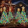 Upgraded Set of 2 Solar Christmas Tree, Outdoor Christmas Decorations,Prelit Xmas Tree w/ 100 LED Multi-color C6 String Lights for Outsdie Holiday Display Yard Front Porch Pathway Grave Cemetery Decor