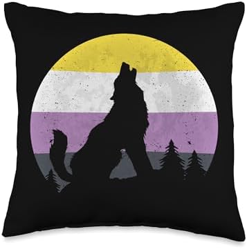 Nonbinary Pride Month Wolf Non Binary Equality Wolf Throw Pillow