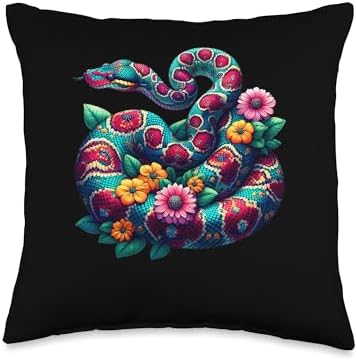 Python Snake Floral Ball Python Tattoo Flowers Snake Lover Throw Pillow