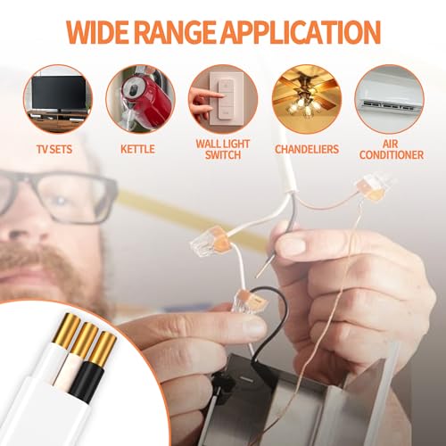 - Durable & Safer: 2 conductor, 14 gauge solid construction has the insulated conductors (Black and White) parallel; The ground wire is wrapped with fire-retardant paper and laid parallel between the insulated conductors; Ground wire is 14 gauge solid also; The jacket is white on 14 gauge NM-B wire