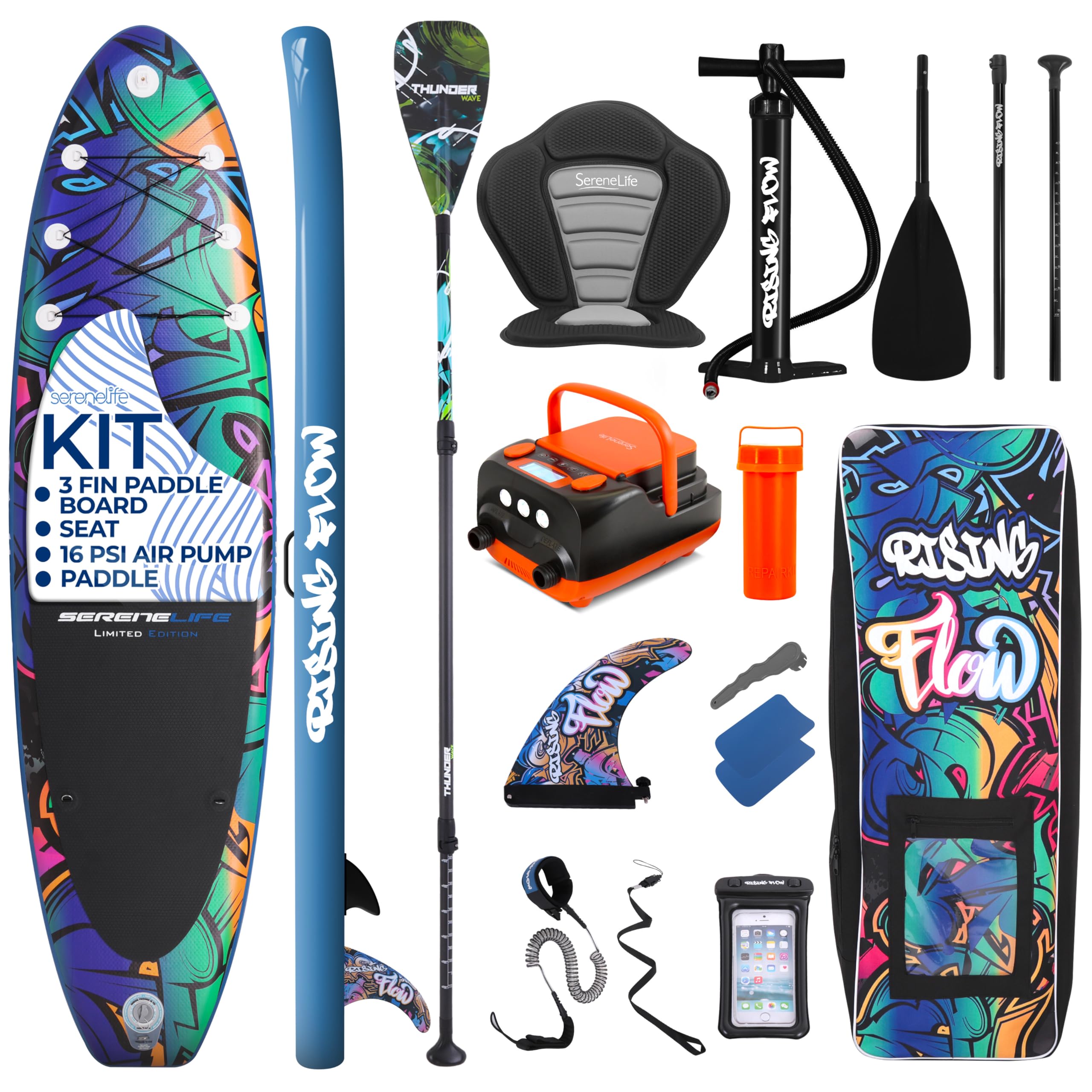 - PAQUETE COMPLETO SUP: 1 tabla de paddle inflable, 3 piezas de pala flotante ajustable en longitud, 1 aleta removible, 1 bomba SUP, 1 mochila, 1 kit de reparación, dos piezas de material de reparación. Este paquete completo SUP te llevará a donde quieras remar fácilmente y cómodamente. Montar una ola nunca pasa de moda, no hay sensación como ella