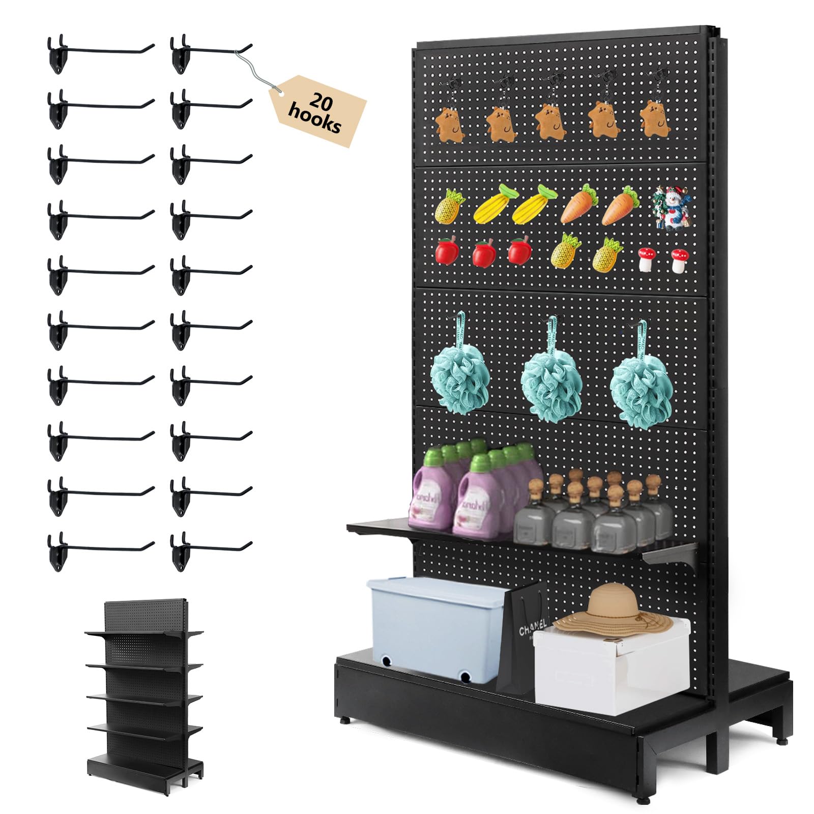 Pegboard Display Stand, Gondola Retail Shelving Wall Display for Convenient Grocery Office Supply or Liquor Stores, Single Side Peg Board Panels, Extra 20 Hooks, No Including 4 Shelves