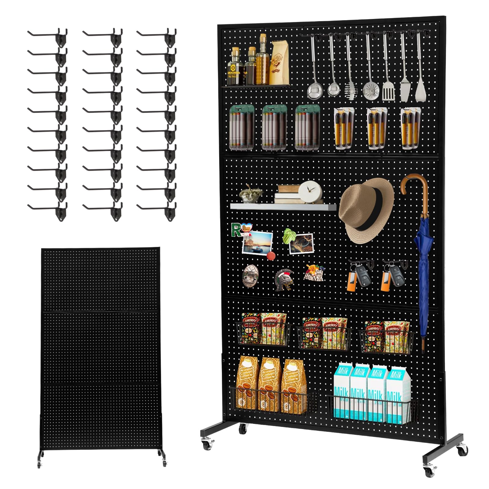 - Great Funtions: Pegboard gondola wall organizer, Pegboard Storage, Perfect display stand for craft shows and retail shop, since this display rack can be relied on the wall, takes up minimum floor spaces.This heavy-duty commercial grade single-sided gondola floor display is used at supermarket and grocery stores, convenience stores, liquor stores and office supply stores, Great pegboard panels system.