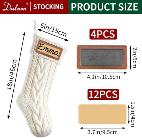 Dalzom® 4Pcs Personalized Christmas Stockings with Leather Patches Custom Name, 18” Premium Large Knitted Christmas Stockings for Kids, Family, Holiday and Fireplace Party Decoration