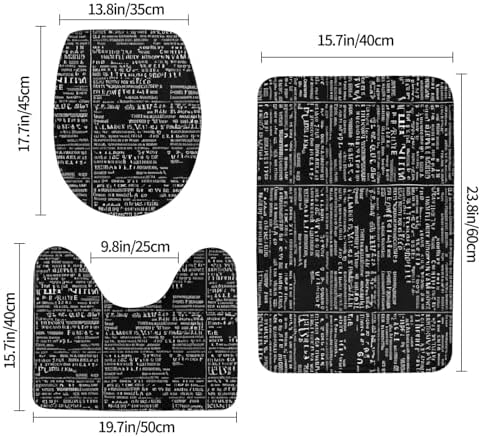 - 【Size Information】3 Pieces Bathroom Rugs Set,Set Includes 1 Bath Mat (60 X 40cm), 1 U-Shape Contoured Toilet Mat (50 X 40cm) And 1 Toilet Lid Cover (35x 45cm) This Bathroom Sets Size Is For Most Bathrooms.