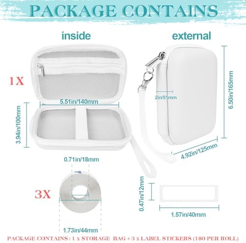 - 【Package Includes】Label Printer Storage Bag x 1 ; Label Paper Tape x 3 Roll (Label Paper 1/2" x 1 1/2" (12mm X 40mm) 180 Labels/Roll)