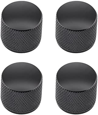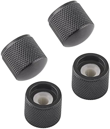 - Material: Durable metal body with plastic inside. Shape: Cylinder with a dome. Color: Black, as the picture shown. Package includes: 4Pcs guitar knobs.