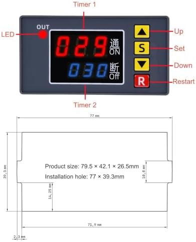 - Supply Voltage: DC12V 20A/1500W(Max). Size: 79 X 42 X 26mm. Time ranging from 1 second to 999 hours. Double LED displays.