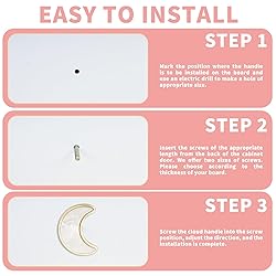 - Material: Zinc alloyColor: white, pinkShape: MoonYour purchase includes 8 unique cabinet knob+8 *mounting screws, each individually packaged to preserve their stunning appearance.suitable for cabinet of most thicknesses.Ease of Installation:Simply drill a hole, align the screw through the back of the board, and tighten it to the knob. While the process is straightforward, we advise caution to ensure a secure and lasting fit for your unique cabinet knob.Wide Uses:dresser pulls suitable for bedrooms and various types of furniture, such as dressing tables, cabinets, wardrobes, drawers, etc., are very decorative.Note: 1. Due to the light and screen setting different,the item’s color may be slightly different from pictures. 2. The size is measured manually, and there may be an error of 1-2mm.