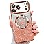 Funda Misscase para iPhone 16 Pro Max, Funda Magnética con Brillo Compatible con MagSafe, Protección Completa Slim Resistente a Choques y Antiarañazos con Protector de Lente de Cámara Logo View Red Antipolvo para Mujeres Oro