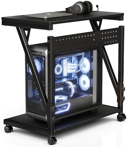 - 𝐕ersatile 𝐒pace: Optimizing your gaming and work spaces for maximum efficiency, the case rack such as a PC stand for floor, a laptop stand for desk, a dual monitor stand and a printer stand for desk. And this small rolling desk also can transform your sofa bed into a multifunctional office and gaming laptop area.