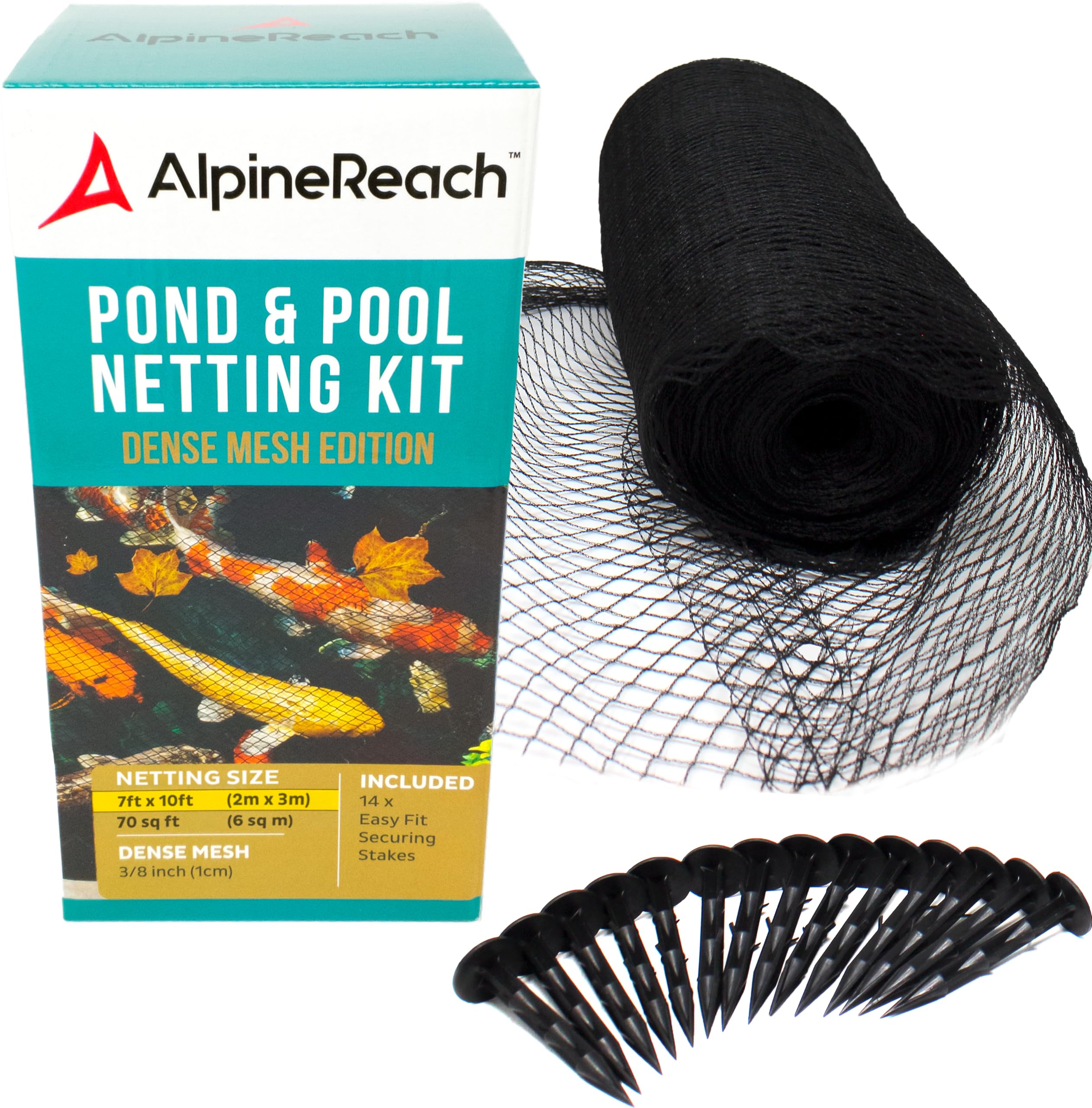 Pond Netting Kit - Heavy Duty HDPE Fine Mesh Net for Koi Ponds - Protects Fish from Raccoons and Herons - Includes Stakes & Zip Ties (10 * 10FT)