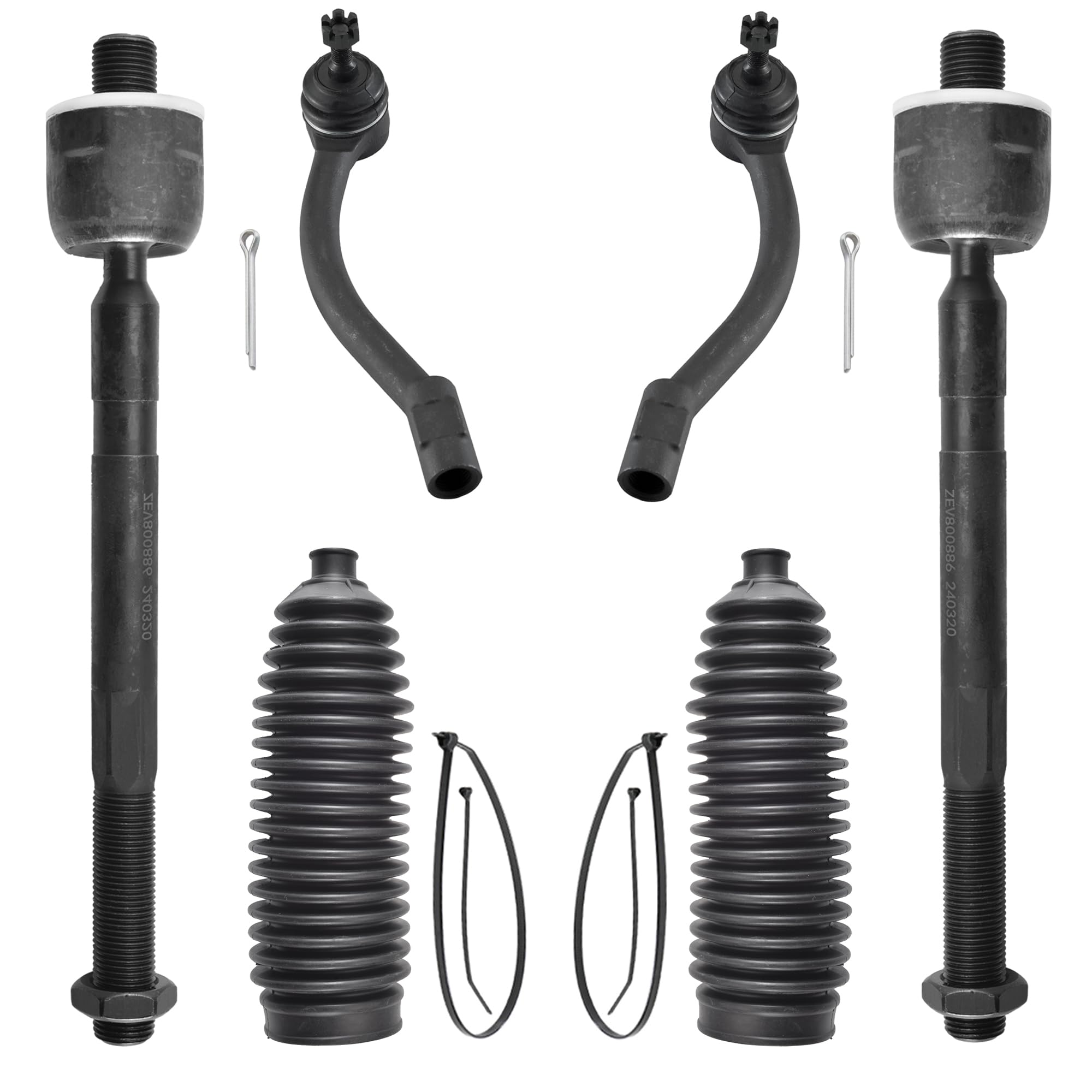 6pcs Front Steering Kit Tie Rod End Inner and Outer and Boots for 1996-2000 Honda Civic and 1997-2000 Acura EL