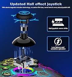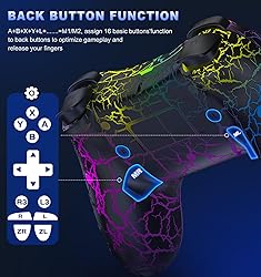 Hall Sense Joystick Controller: This Switch controller comes with Hall Sense Joystick, the innovative electromagnetic induction technology allows your controller to never drift, you can precisely control your character in intense games, greatly extending the life of the controller 【Easier Pairing And Wake-Up Function】After entering the console connection interface, simply press and hold the SYNC button of the switch pro controller to connect until the signal light flashes to complete the first connection. Next time, just press the "HOME" button to wake up your console(NOTE: DOES NOT SUPPORT WAKE-UP SWITCH 2 AND AUDIO FUNCTIONS) Unique Cracked Design & Custom Lighting Effects: Your switch controllers will have adjustable LED lights in 6 different colors, You can switch the color you like at any time. If you choose red, its effect will be like hot "magma"; If you choose blue, it will be like a brilliant lightning! Buy it now, light up your favorite light in the night, you will be the coolest among your friends Compatible With Switch Console/Ios/Android/PC: Upgraded switch controllers not only compatible with switch console, and also is available for ios/android/pc. Gaming controllersupports wireless connection to play switch games, iOS MFI games(IOS 13.0 and above), Android HID games; also can be via USB wired connection with PC to support playing X-Input and Steam games.(Windows 7 and above), If you need a Bluetooth receiver to connect to your PC, you can choose the Blue·tooth model Customizable Buttons With App: The Pro Controller is also compatible with the KeyLinker app. After installing the app on your phone, you can customize the buttons of the gamepad, such as changing the A button to the B button or any other button. You can adjust the button layout according to your operating habits (which applies to PC, Android, and iOS systems as well). Additionally, you can use the app to upgrade this Switch controller without the need to download additional update packages 1000mah Battery Capacity: To meet players’ gaming time needs, we increased the battery capacity of the switch controller to 1000mah, which is twice the capacity of other controllers. The package includes a UBS-C charging cable, and a 3-hour charge can last about 12-16 hours, even with the light effect on can also ensure longer game length (play time used without the light effect will be longer) Adjustable Turbo & Vibration Function: Wireless Switch Pro Controller can be set to auto TURBO or manual TURBO mode. You can set TURBO to A/B/X/Y/L/ZL/R/ZR keys. There are 3 adjustable speed: 5shots/s, 12 shots/s or 20 shots/s. What’s more, switch turbo controller also have dual vibration motors with 4-level precise vibration: None, Weak, Medium and Strong that provide you excellent vibration feedback to enhance the game immersion Easier Pairing And Wake-Up Function: After entering the console connection interface, simply press and hold the SYNC button of the switch pro controller to connect until the signal light flashes to complete the first connection. Next time, just press the "HOME" button to wake up your console