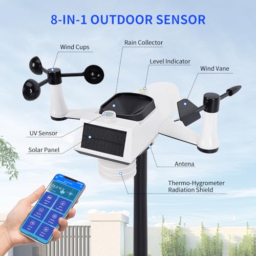 Wireless Weather Station, Outdoor Weather Forecast Weather Station, Measuring Temperature, Humidity, Wind Speed, Wind Direction, Rainfall, Light Intensity and Uv Meteorological Instruments