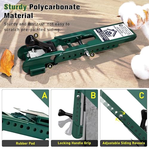 - 【Safe And Environmentally Friendly Materials】The main body of the siding mounting block tool is made of PC material, the top screws are 12.9 grade iron and the bottom screws are stainless steel, the shorter length of the screws ensures your safety during use, the cleats are made of mammoth steel material, the locking grips are made of durable plastic and are made of a rubberized material that ensures that the front side of the siding won't get scratched or damaged!