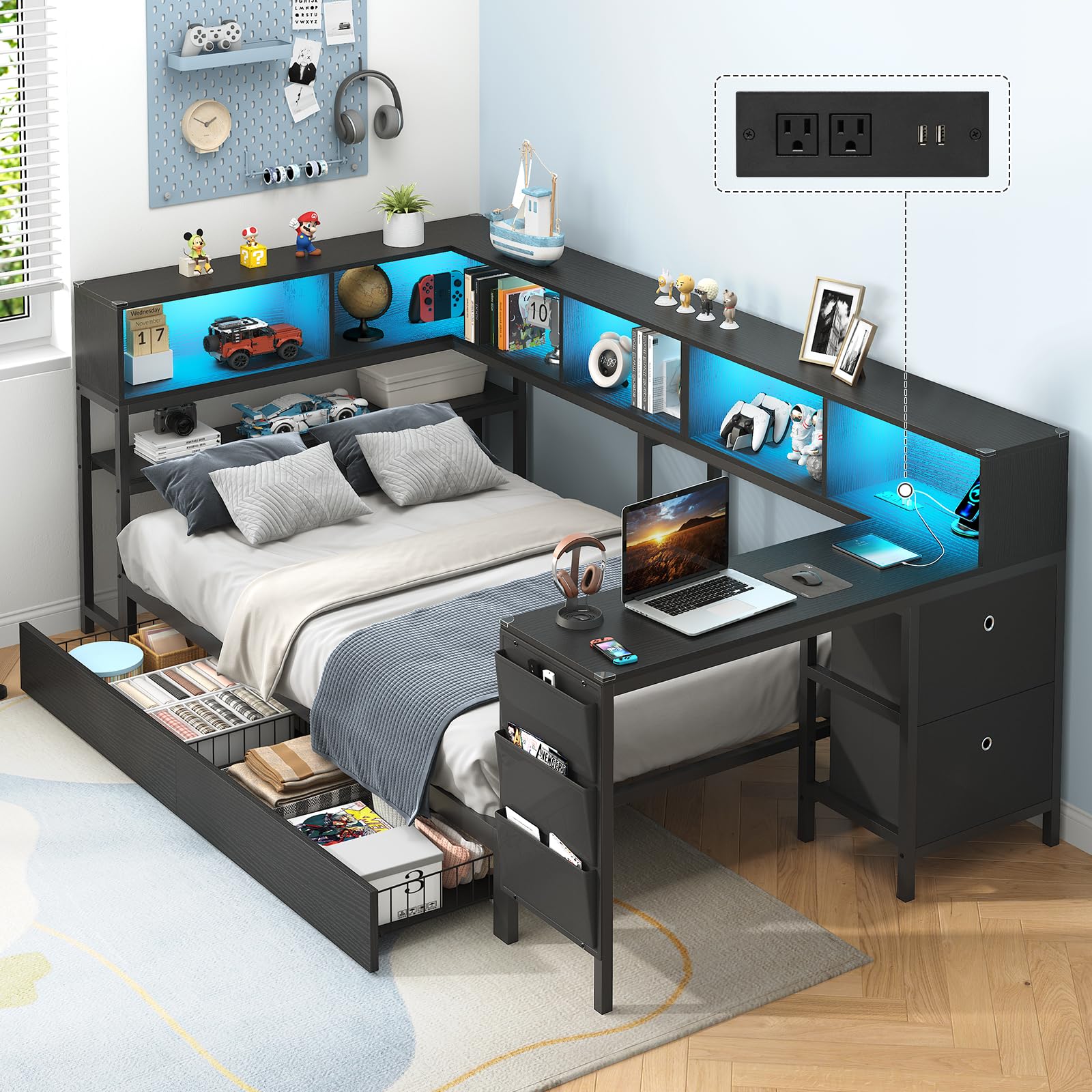 - 【Built-in Power Outlets for Easy Use】The wide dresser desktop is equipped with built-in power outlets, including 3 AC outlets and 2 USB ports, which can power your electronic devices such as table lamps, mobile phones, speakers, makeup mirrors, hair dryers, etc. These ports are very convenient to use, especially when your room has limited outlets.