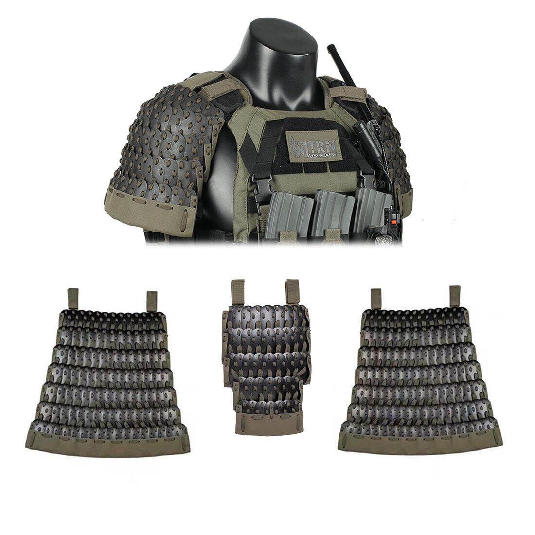 Tactical Armor Set, Samurai Tactical Armor Full Set (1Pair x Shoulder Armors, 1 x Crotch Protector, 1Pair x Bracers), 500D Medieval Warrior Protector Equipment (Without Vest)