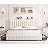 HIFIT Upholstered LED Bed Frame Queen Size with Charging Station and 4 Storage Drawers, Velvet Button Tufted Queen Platform Bed with Adjustable Headboard, No Box Spring Needed, Easy Assembly, Beige